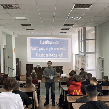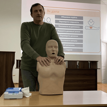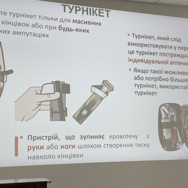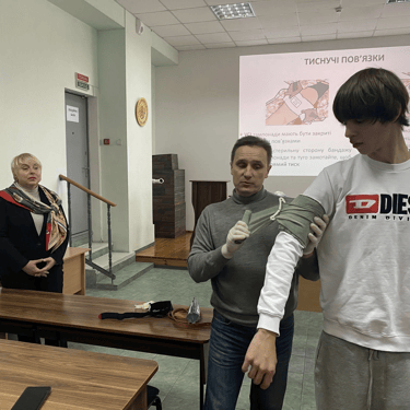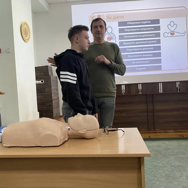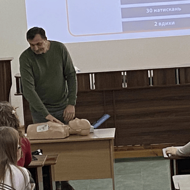 Мета зустрічі - поглиблення практичних знань і формування у здобувачів освіти навичок надання першої домедичної допомоги у критичних ситуаціях, що включають зупинку артеріальної кровотечі та проведення базових реанімаційних заходів за алгоритмом BLS.