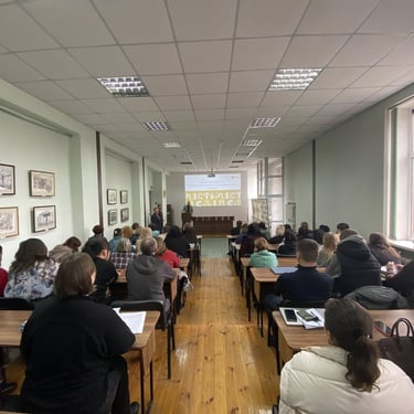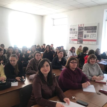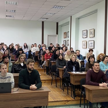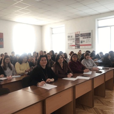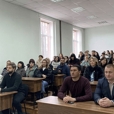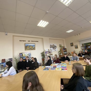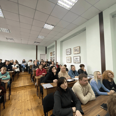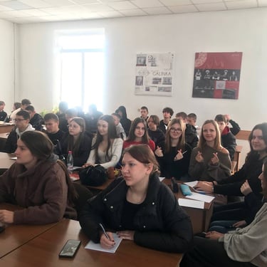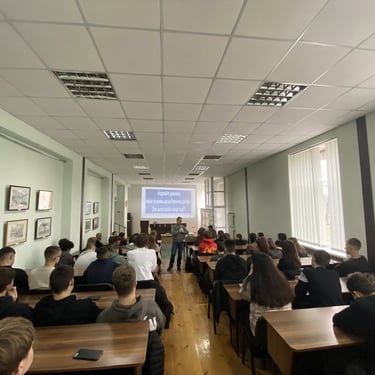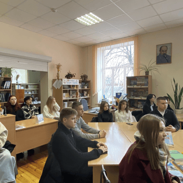 Зустріч проходила зі студентами 1-го курсу в читальній залі бібліотеки коледжу.