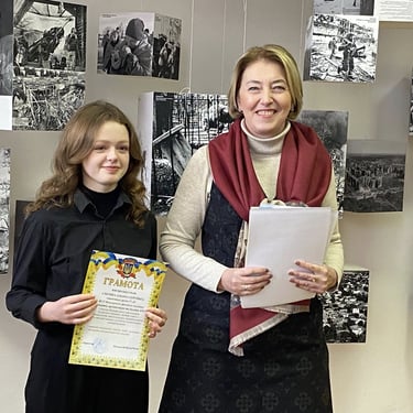 Тема майбутнього України в родині європейських народів передана не лише через яскраві образи, а й через тонкі композиційні зв’язки, які митці передають через гармонійне поєднання кольорів, динаміку ліній та символічні мотиви. оптимізм, прагнення до миру, творчої співпраці та гідного майбутнього. Студенти зуміли знайти баланс між патріотичною ідеєю та сучасною художньою мовою.