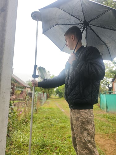 Для забезпечення точності ортофотопланів на місцевості були зафіксовані опорні точки, а їх координати визначалися за допомогою двочастотного GNSS/RTK-приймача Leica GS08.