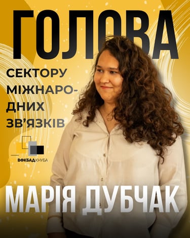 Голова сектору міжнародних зв’язків – Марія Дубчак (19БР-1)