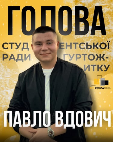 Голова студентської ради гуртожитку – Павло Вдович (48А-2)