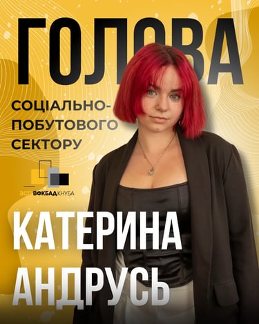 Голова соціально-побутового сектору – Катерина Андрусь (46-М)