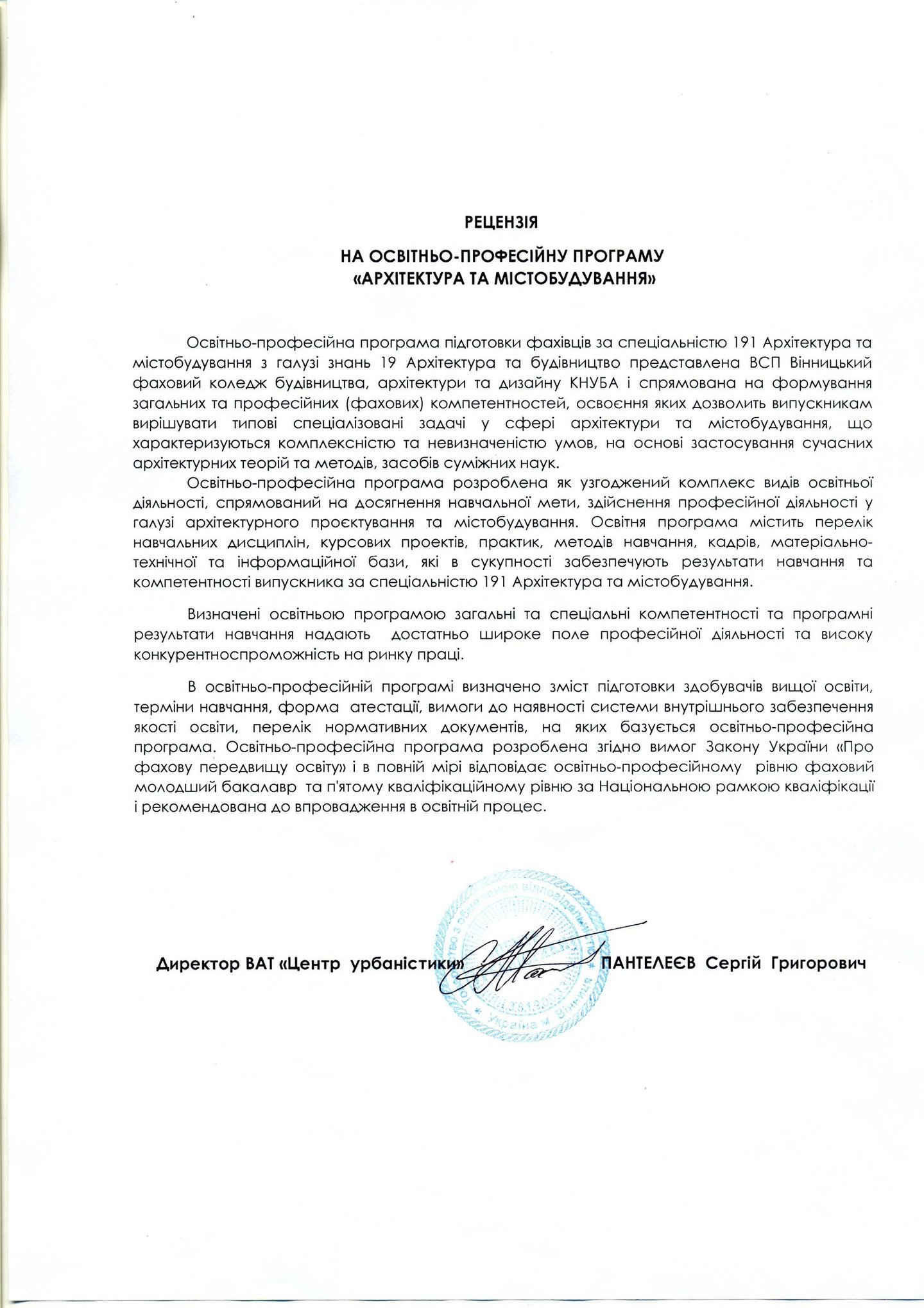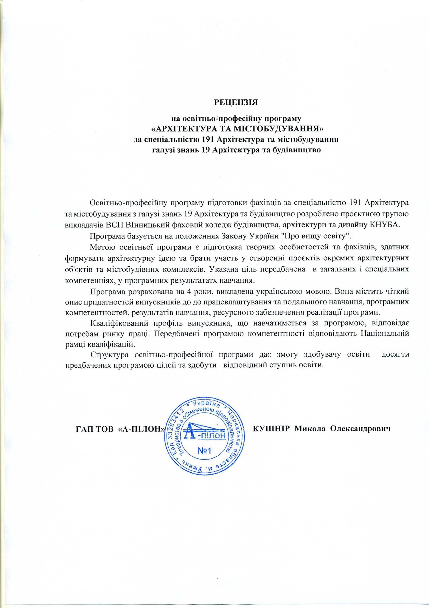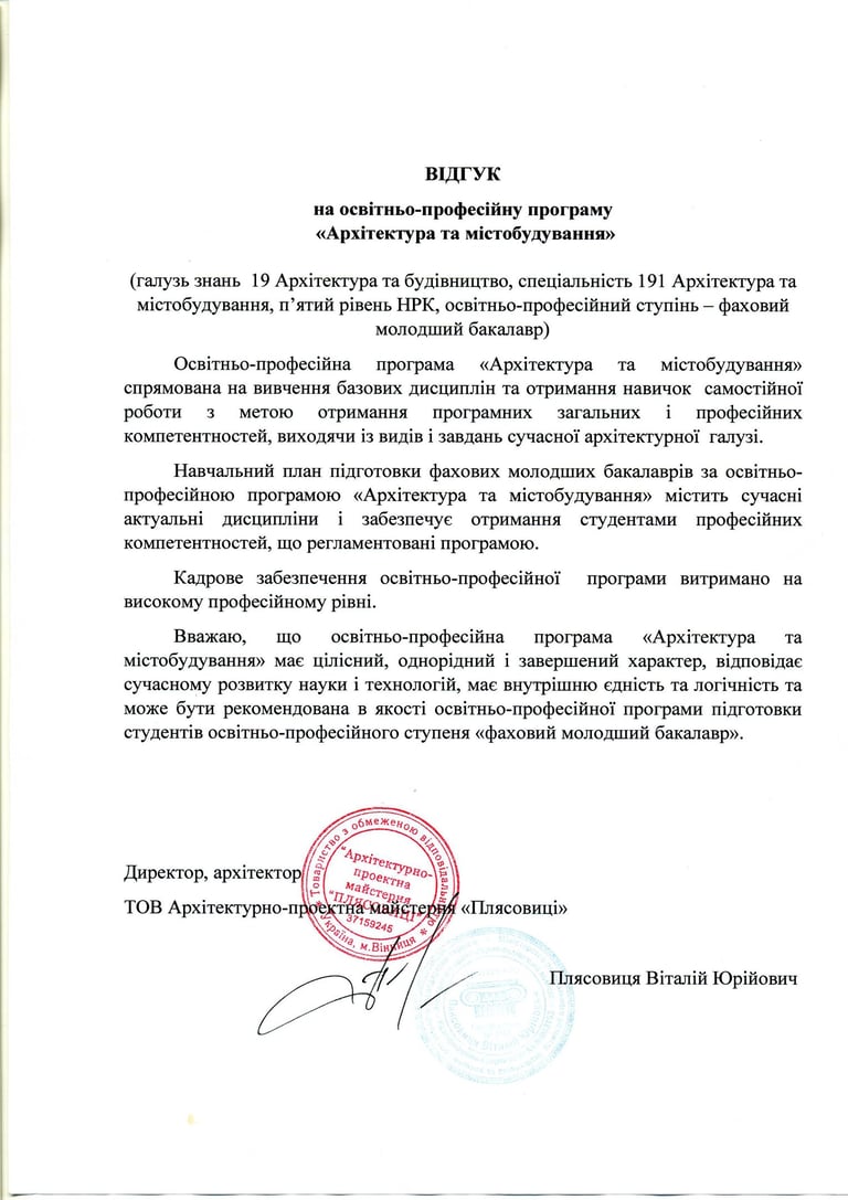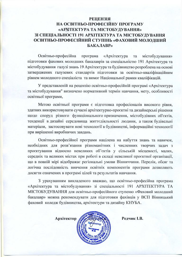 Освітньо-професійна програма "Архітектура та містобудування"