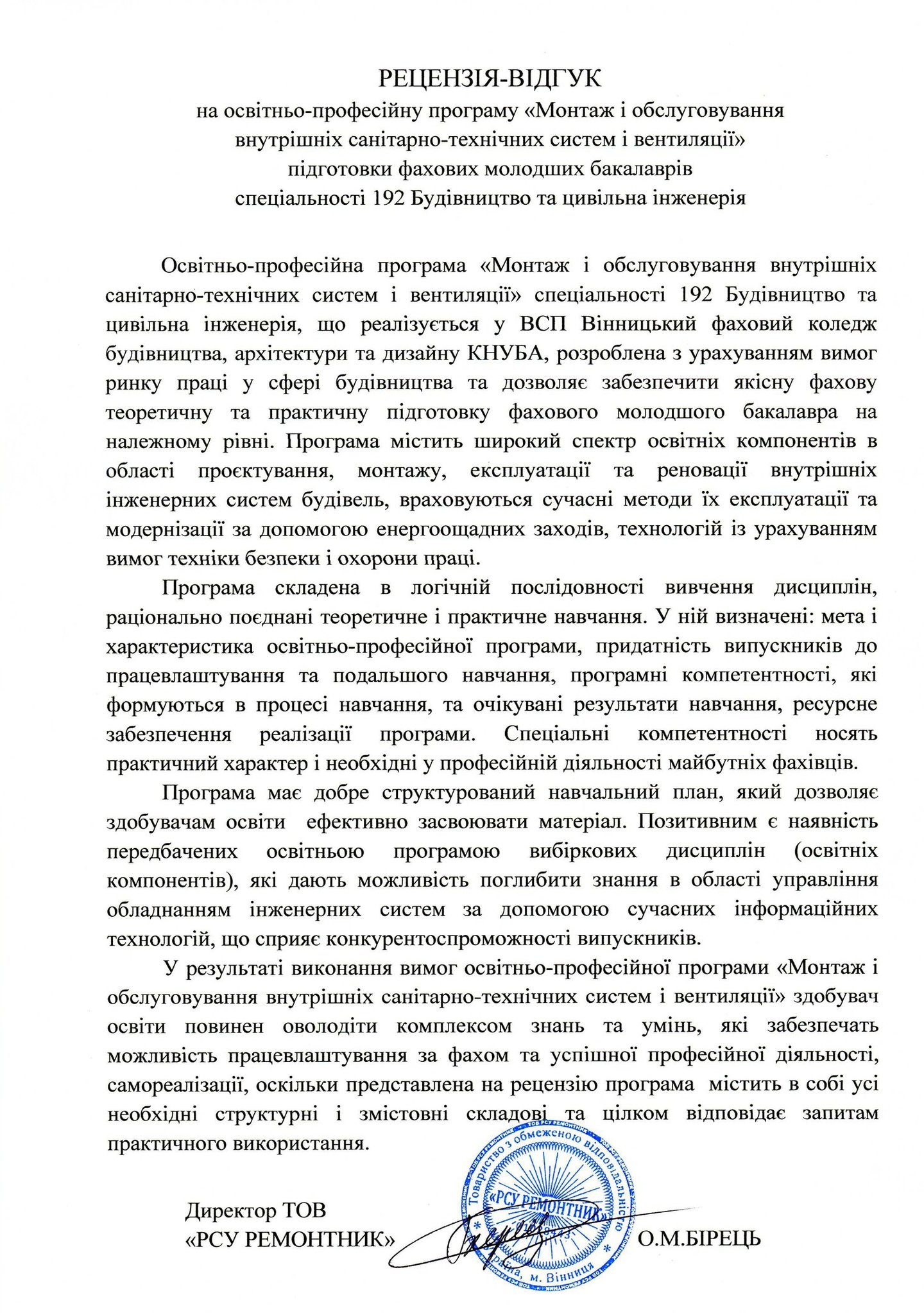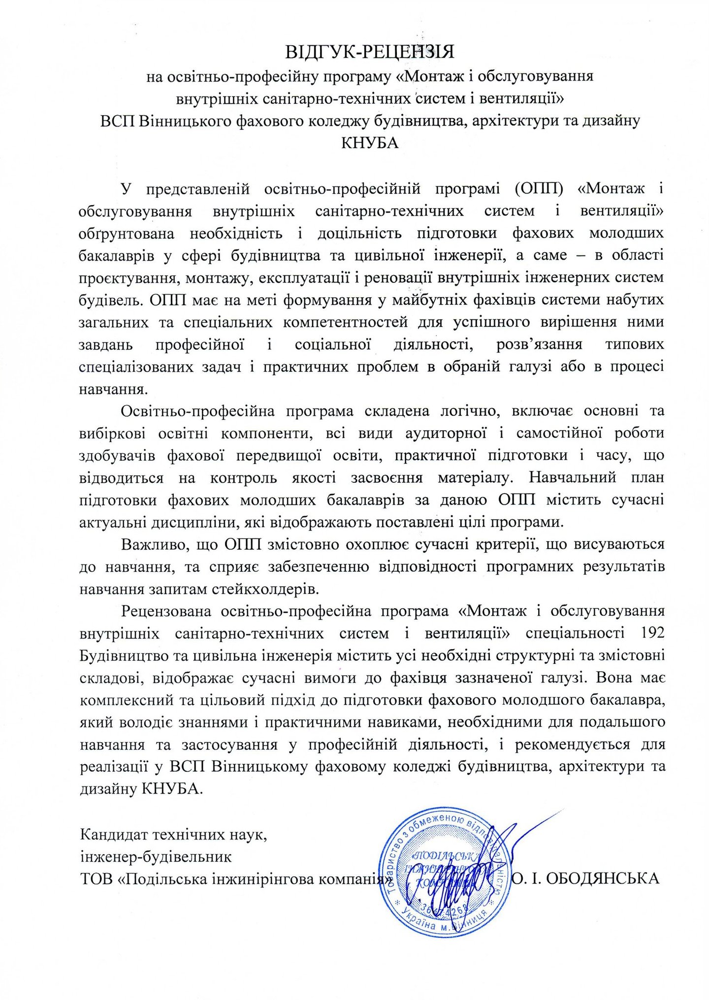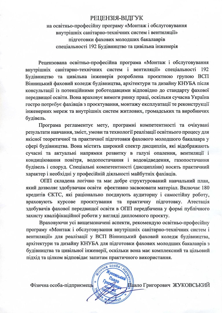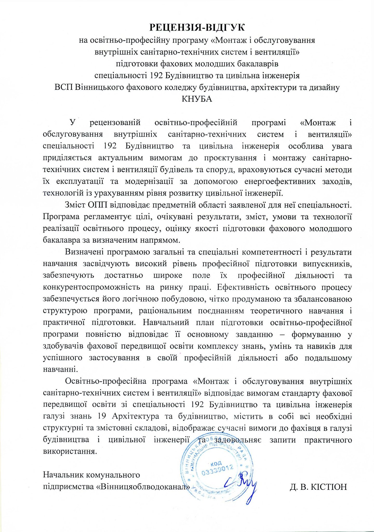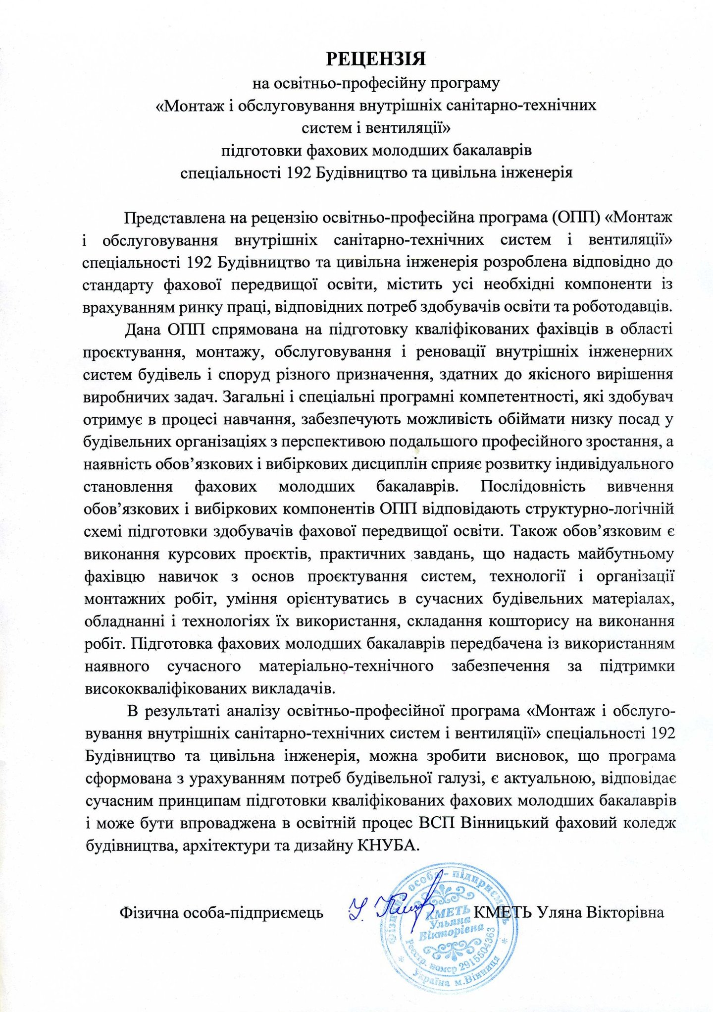 Освітньо-професійна програма "Монтаж і обслуговування внутрішніх санітарно-технічних систем і вентиляції"
