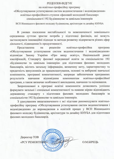 Освітньо-професійна програма "Обслуговування устаткування систем водопостачання і водовідведення"