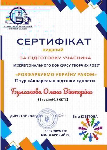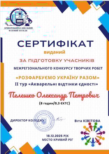 Сертифікати за підготовку учасників отримали викладачі-предметники Пелешко О. П., Сидоренко О. Д., Булгакова О.В.